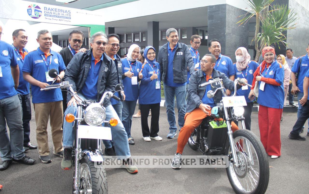 Setelah membuka rakernas, Pj. Gubernur didampingi Sekretaris Jenderal IA-ITB Arya Sinulingga dan Ketua Umum IA ITB Gembong, mencoba motor listrik dari PLN, dan mengunjungi stand-stand UMKM Kep. Babel.