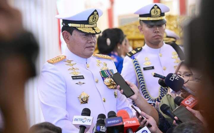 “Tadi baru saja telah kita lantik Laksamana TNI Yudo Margono, di samping saya, sebagai Panglima TNI, dan saya sudah pesan ke Panglima TNI untuk yang pertama menjaga kedaulatan NKRI, yang kedua menjaga kesatuan dan persatuan kita,” ujar Presiden dalam keterangannya kepada awak media usai pelantikan.