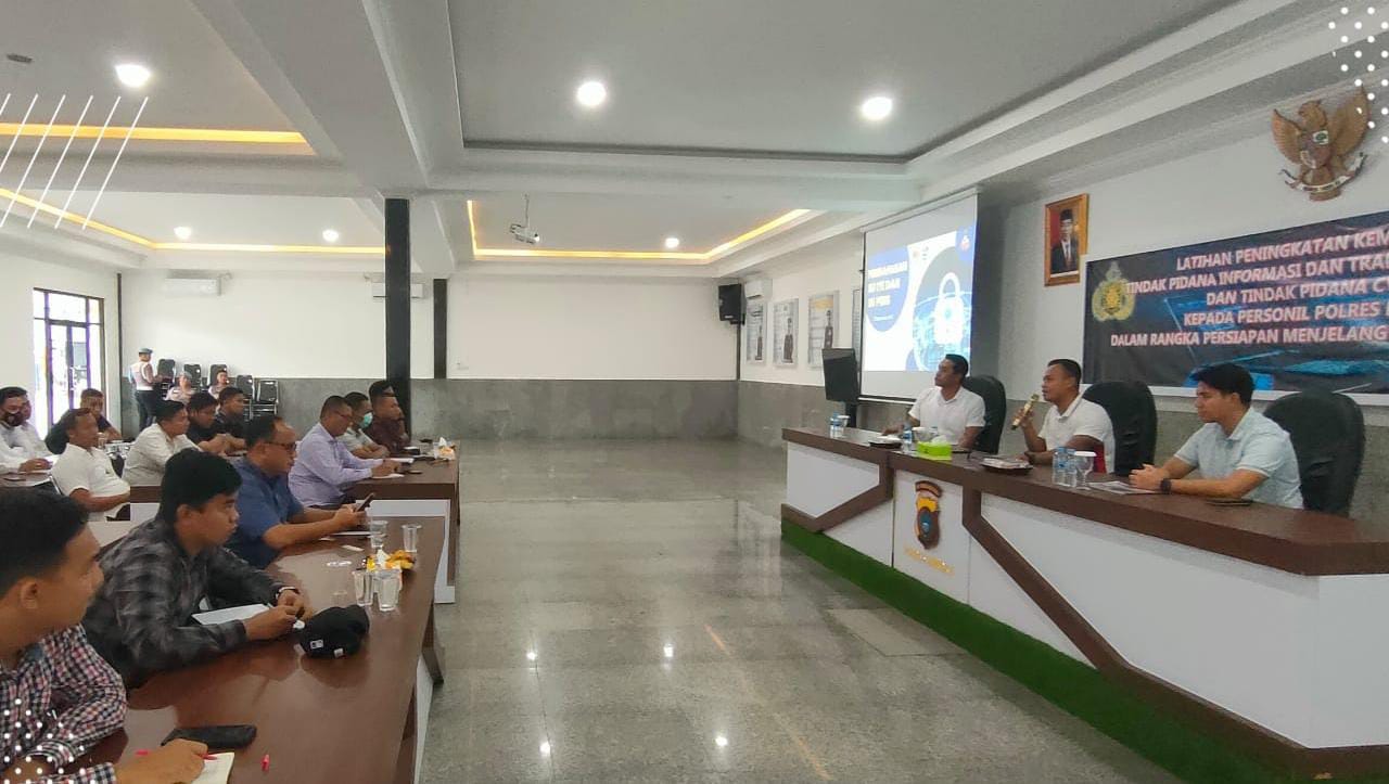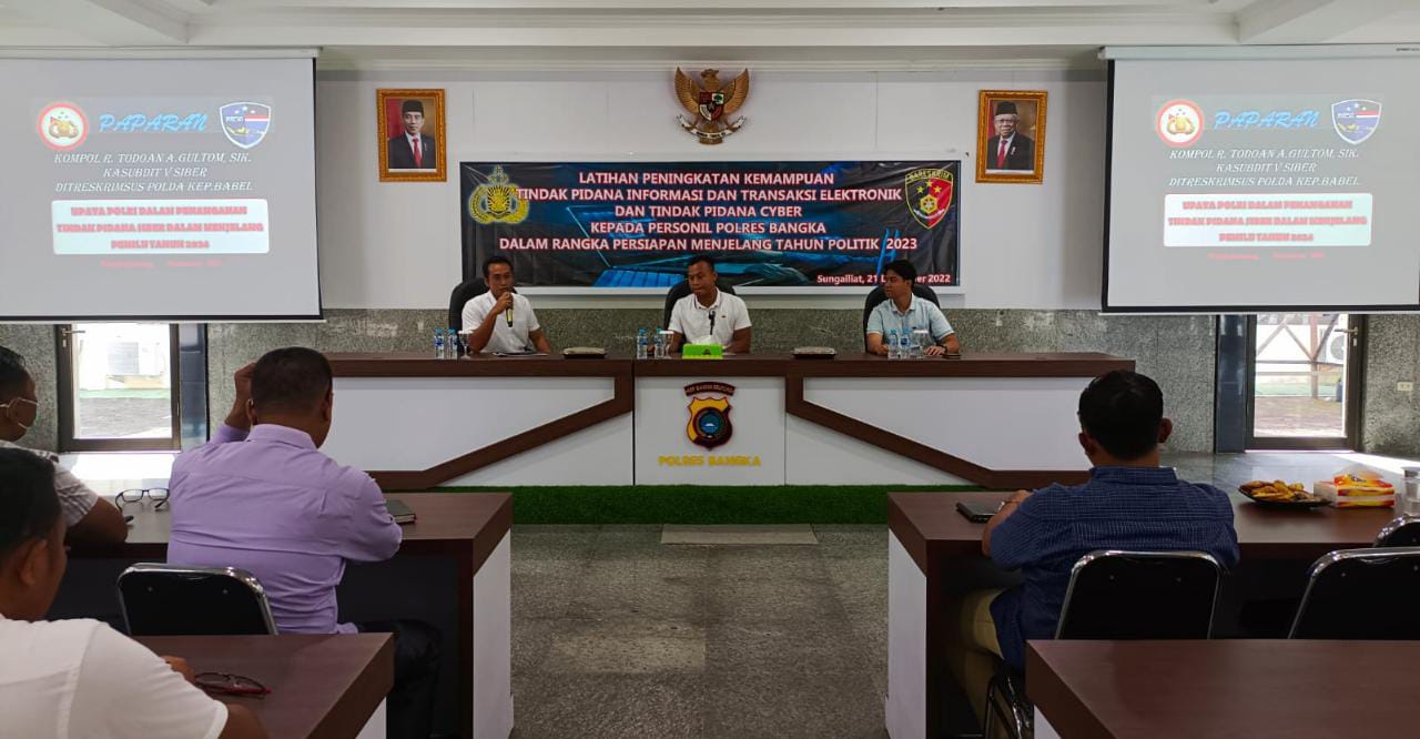 Sungailiat | Jejakkriminal.com – Dalam meningkatkan Kemampuan SDM,Personil Polres Bangka melaksanakan Kegiatan Latihan Peningkatan Kemampuan Tindak Pidana Informasi dan Transaksi Elektronik dan Tindak Pidana Cyber Kepada Personil Polres Bangka Dalam Rangka Menjelang Persiapan Tahun Politik 2024 di Aula Tribrata Polres Bangka.Rabu (21/12/2022)