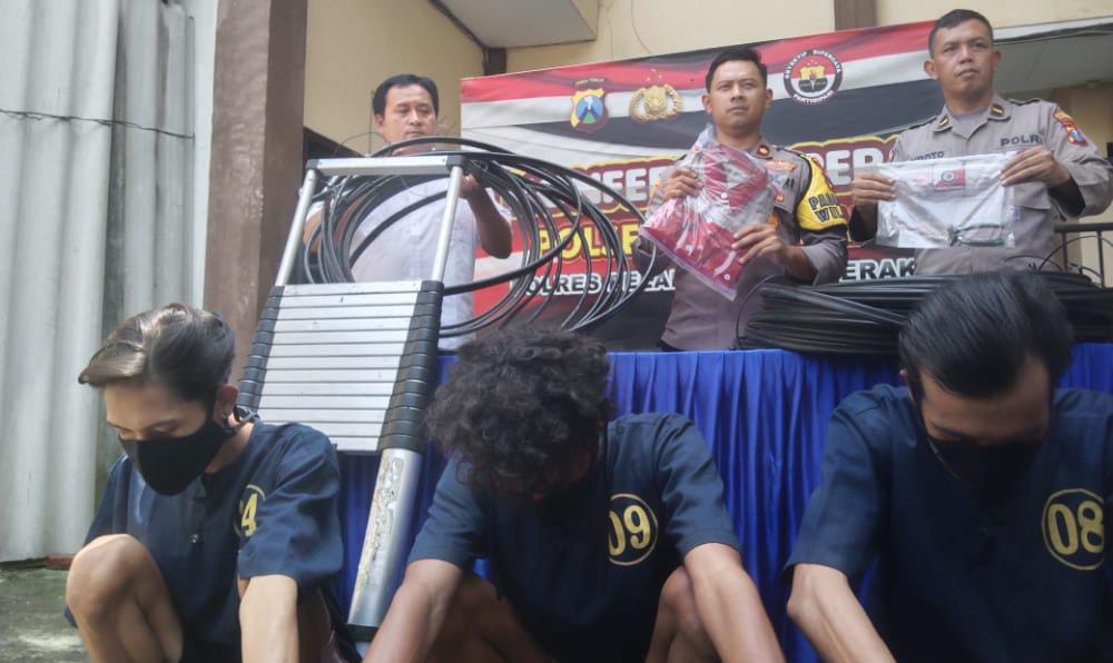 Polsek Kenjeran berhasil mengamankan tiga pria pelaku pencurian kabel telepon yang terjadi di Kenpark yang berinisial AD, ML, MS, Kapolsek Kenjeran Kompol Ardi Purboyo menjelaskan kronologi kejadian yang dilakukan oleh tiga tersangka ini.