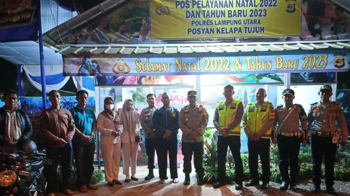 Lampung Utara| Jejakkriminal.com- Di hari pertama penggelaran Operasi Lilin Krakatau 2022 pengamanan Natal dan Tahun baru 2023 (NATARU), Kapolres Lampung Utara AKBP Kurniawan Ismail S.H., S.I.K., M.I.K., langsung melakukan pengecekan ke Pos-Pos pengamanan dan situasi Kamtibmas di wilayah kerjanya. Jumat (23/12/2022). Dalam pengecekan tersebut, Kapolres AKBP Kurniawan yang di dampingi Waka Polres Kompol Dwi Santosa SH, Kabag ops Kompol Arjon Safrie SH, Kasat Intelkam Iptu Suhaili dan Kasat Lantas Iptu Joni Charter itu menekankan kepada petugas pengamanan agar benar-benar siaga, laksanakan tugas dengan penuh rasa tanggung jawab dan layani masyarakat dengan humanis, jadikan tugas sebagai bagian dari ibadah.Di Lampung Utara sendiri, terdapat 3 Pos yang telah disiapkan yakni 1 Pos Pelayanan berlokasi di Kelapa Tujuh Kotabumi dan 2 Pos Pengamanan masing-masing di Simpang Propau Kecamatan Abung Selatan dan Kecamatan Bukit Kemuning.