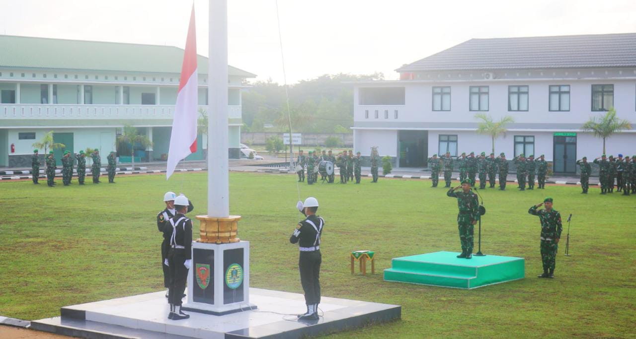 Prajurit dan PNS Korem 045/Gaya Ikuti Upacara Bendera 17 an
