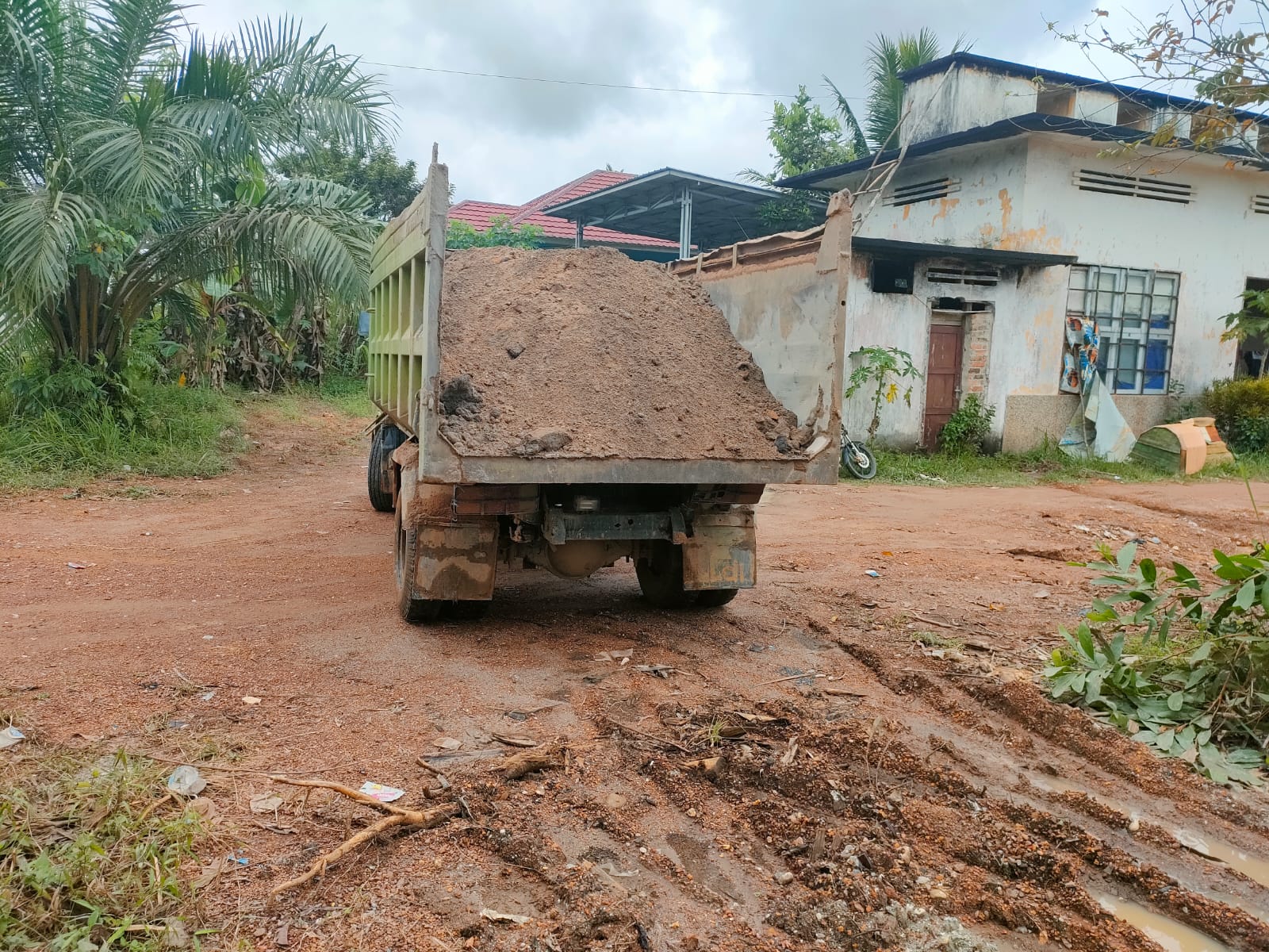 “Sudah puluhan Mobil Dumptruk membawa Tanah untuk menimbun di dekat jalan” Jelas Amat (23/01)Dalam tahapan selanjutnya akan dilakukan pemerataan dan memakai alat berat. Dijelaskannya bahwa Tanah yang dari dalam akan di bawa ke arah jalan untuk dilakukan pemerataan agar lebih efektif ketahanan dan kekuatannya.