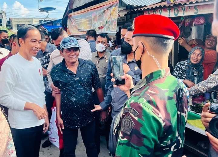 Lhokseumawe| Jejakkriminal.com- Presiden Joko Widodo mengecek harga-harga sejumlah komoditas di Pasar Batuphat Timur, Kota Lhokseumawe, Provinsi Aceh, pada hari Jumat, 10 Februari 2023.