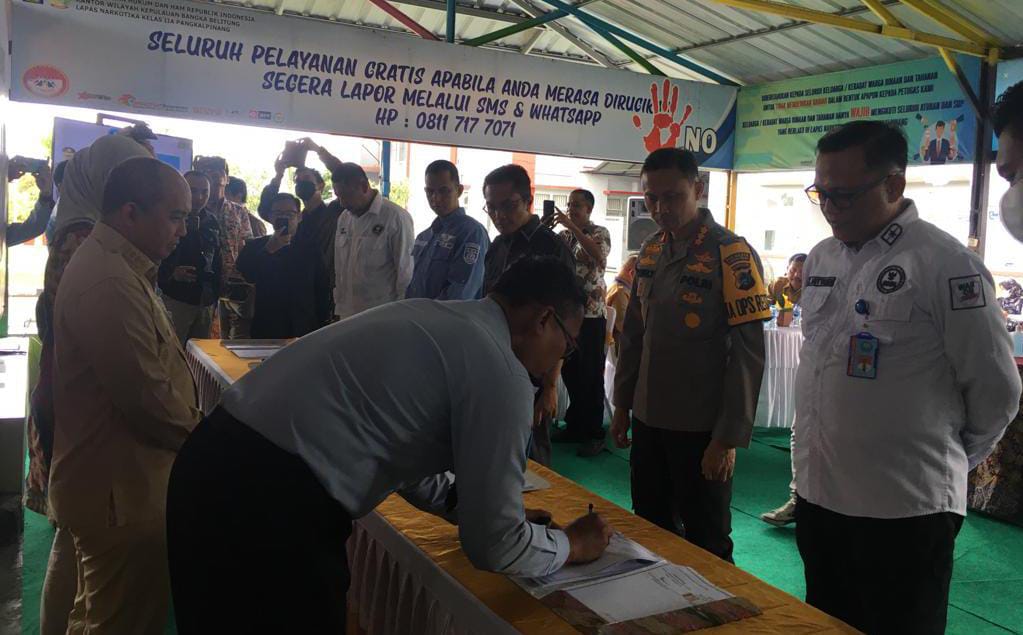 “Dalam hal ini Lapas Narkotika Kelas IIA Pangkalpinang Melakukan Sinergi Aktif dengan para Aparat Penegak Hukum terkhusus kepada Badan Narkotika Nasional serta jajaran Stackeholder, penandatanganan perjanjian kerja sama Lapas Narkotika Kelas IIA Pangkalpinang hari ini,” kata Nur Bambang.