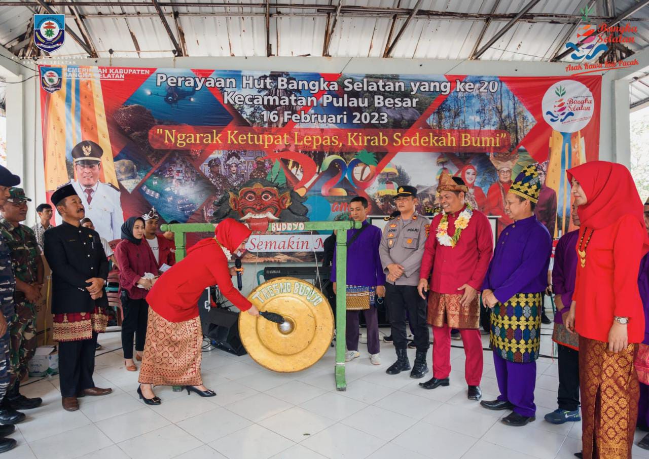 Pulau Besar|jejakkriminal.com – Memperingati Hari jadi Kabupaten Bangka Selatan Ke – 20 di Kecamatan Pulau Besar acara ” Ngarak Ketupat Lepas Kirab Sedekah Bumi ” digelar di Kawasan Wisata Pantai Mecusuar Desa Batu Betumpang, Kamis (16/2/23).