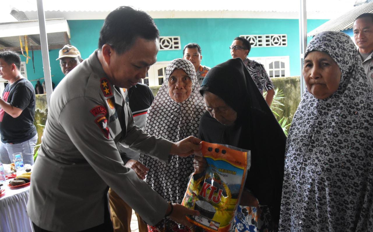 Diakhir Kegiatan Kapolda Kepulauan Bangka Belitung memberikan bantuan beras kepada masyarakat Desa Kace Kecamatan Kabupaten Bangka.
