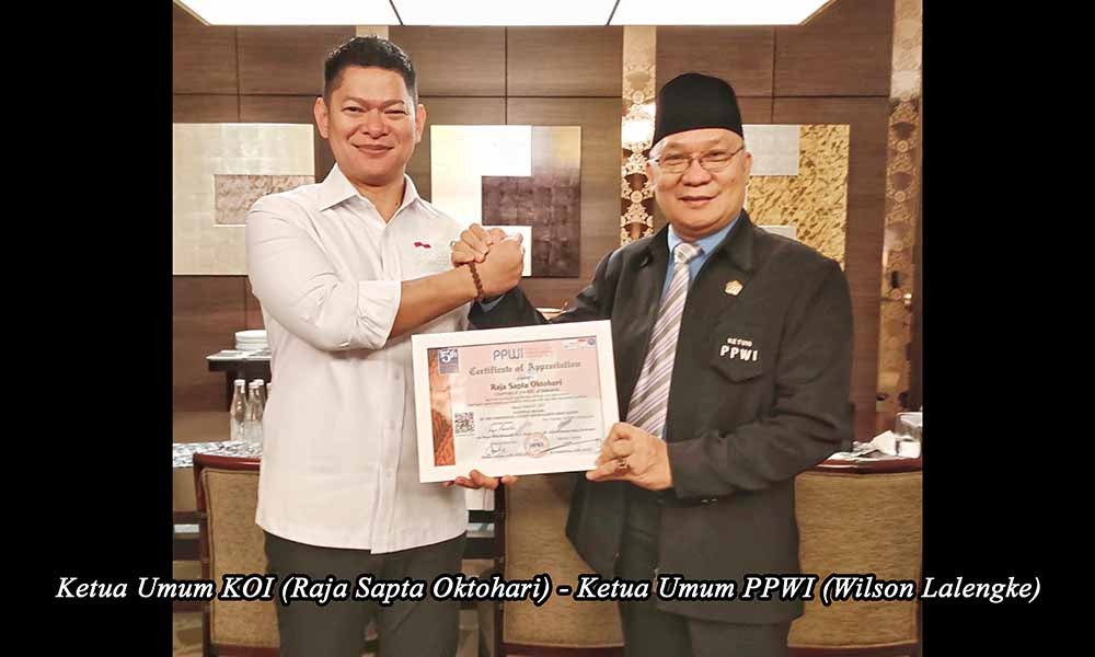 “Alhamdulillah, Puji Tuhan, hari ini kita dari PPWI bisa bertemu-audiensi dengan Ketua Umum Komite Olimpiade Indonesia, Bapak Raja Sapta Oktohari. Dalam pertemuan tadi, disamping memperkenalkan jajaran kepengurusan PPWI Nasional yang baru hasil Kongres Nasional III lalu, kita juga membahas beberapa program yang sekirannya dapat dikerjasamakan oleh kedua lembaga ini, PPWI dan KOI,” ungkap Wilson Lalengke.Dari pantauan lapangan, temu silahturahmi PPWI dengan KOI yang dilaksanakan di Lt. 2 Fairmount Hotel, Senayan, Jakarta Pusat, itu berlangsung akrab dalam suasana persabatan yang apik. Hadir mendampingi Ketum PPWI antara lain, Muhammad Ribaldi Adiwar dari Sekretariat Nasional PPWI dan Edwin Waturandang dari PPWI DKI Jakarta serta sejumlah pewarta lainnya. Sementara itu dari pihak KOI, selain Ketua Umum-nya Raja Sapta Oktohari, terlihat juga Toto dan beberapa staf KOI.