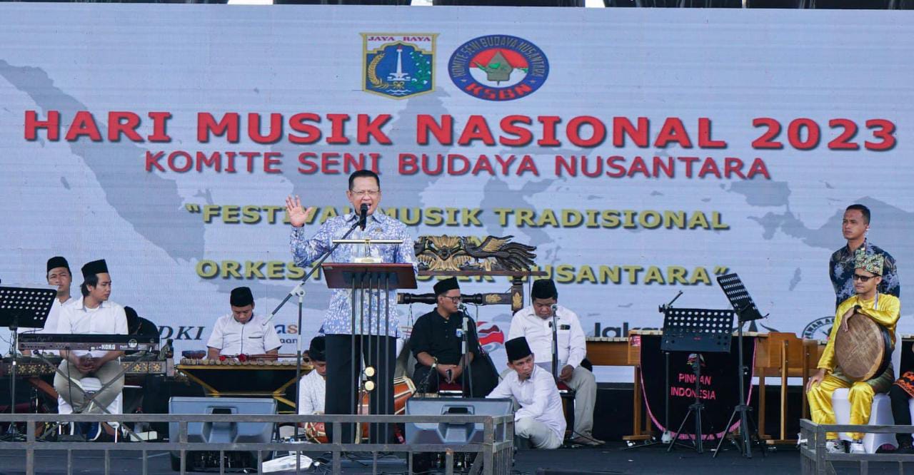 JAKARTA| Jejakkriminal.com – Ketua MPR RI sekaligus Wakil Ketua Umum Partai Golkar Bambang Soesatyo bersama Ketua Umum Komite Seni Budaya Nusantara (KSBN) Mayen TNI (Pur) Hendardji Soepandji serta Kepala Biro Pendidikan dan Mental Spiritual Pemprov DKI Jakarta Gunas Mahdianto yang hadir mewakili PJ Gubernur DKI Jakarta, membuka Festival Musik Tradisi dan Orkestra Musik Nusantara dalam rangka Peringatan Hari Musik Nasional 9 Maret. Diselenggarakan KSBN bekerjasama dengan Pemprov DKI Jakarta.