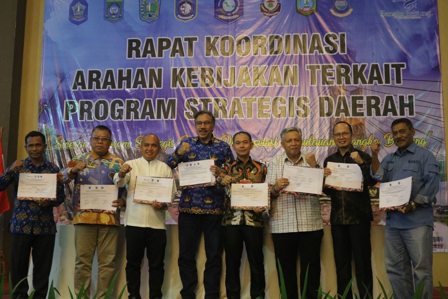 Kegiatan rakor ini ditutup dengan Penandatanganan Kesepakatan antara Pemprov Babel yang ditandatangani oleh Pj. Gubernur dan masing-masing Kepala Daerah se-Bangka Belitung. *Sumber: Diskominfosta Bangka Tengah