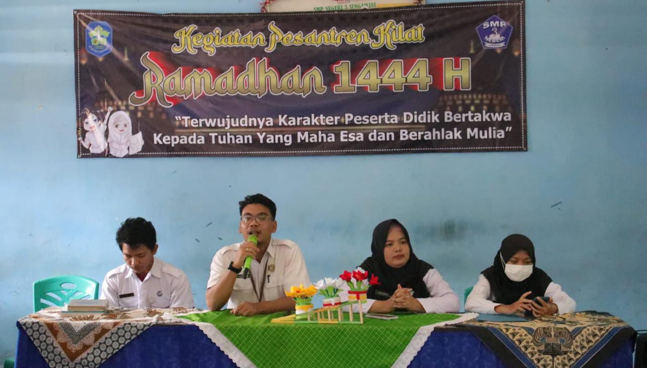 Sungailiat| Jejakkriminal.com – 13/04/2023 Pada bulan suci Ramadhan 1444 H ini SMPN 3 Sungailiat mengadakan kegiatan Pesantren Kilat yang diikuti 733 pelajarnya terdiri dari Kelas 7,8 dan 9. Kegiatan yang bertemakan “Terwujudnya peserta didik bertaqwa kepada Tuhan Yang Maha Esa dan berakhlak mulia” diselenggarakan selama 3 hari dari tanggal 11-13 April 2023.