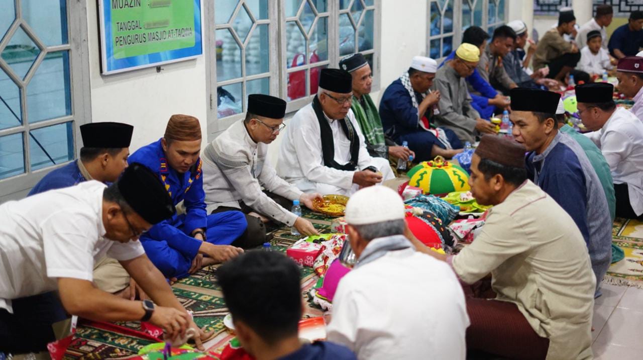 Pada kesempatan ini Bupati Bangka Tengah, Algafry Rahman, menyerahkan langsung 1 unit water dispenser dan 1 unit portable sound system kepada Masjid At-Taqwa dari Pemkab Bateng, serta 30 paket sembako, 30 santunan anak yatim dari Jamkrida Babel dan 10 paket sembako dari Baznas Bateng.