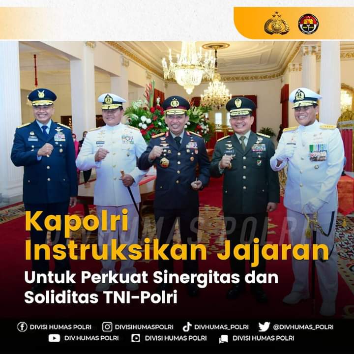 Jakarta| Jejakkriminal.com- Kapolri Jenderal Polisi Drs. Listyo Sigit Prabowo, M.Si., menginstruksikan kepada seluruh jajaran Kepolisian untuk mempertahankan dan memperkuat sinergitas serta soliditas antara TNI-Polri.