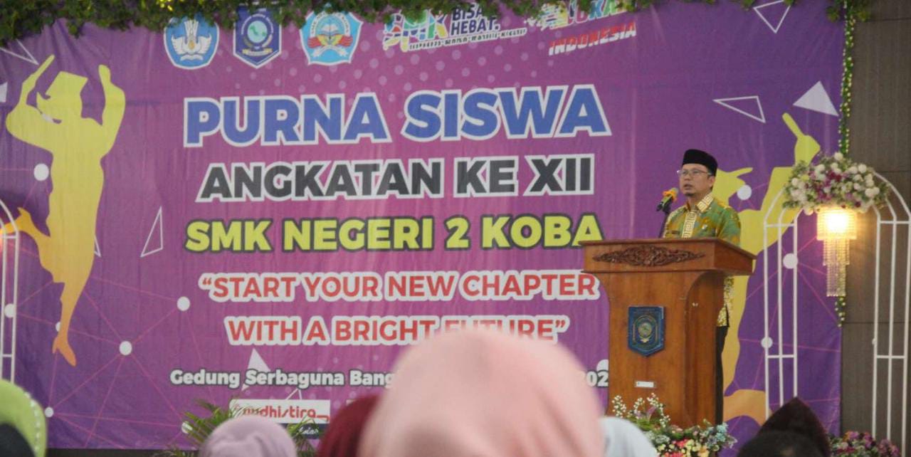 “Atas nama Pemerintah Kabupaten Bangka Tengah, saya haturkan terima kasih kepada jajaran guru SMK Negeri 2 Koba beserta para wali murid yang telah mendidik, mengasuh dan mengajar anak-anak kami di Bangka Tengah sehingga dapat menyelesaikan pendidikannya,” ujarnya.