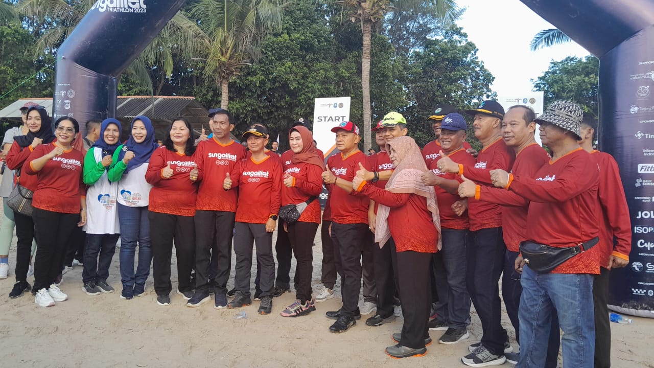 Sementara itu Bupati Bangka Mulkan SH,MH dalam sambutannya mengapresiasi atas suksesnya Sungailiat Triathlon 2023.
