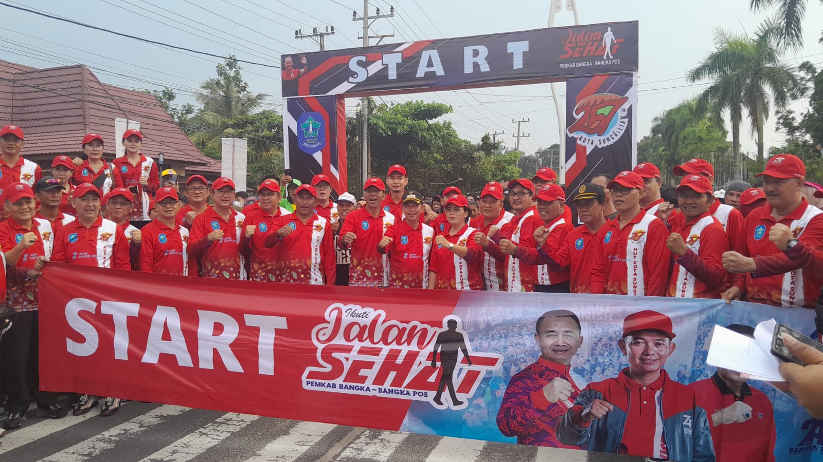 Jalan sehat yang diikuti ribuan peserta ini dilepas secara langsung oleh Ir Rudianto Tjen dan Pj Gubernur secara bersama sama dengan ditandai pengibaran bendera start.Dengan menempuh jarak 5,2 km para peserta jalan sehat yang berasal dari berbagai daerah di kabupaten Bangka bahkan ada yang dari Pangkalpinang dan Bangka tengah tampak antusias dan semangat mengikutinya.