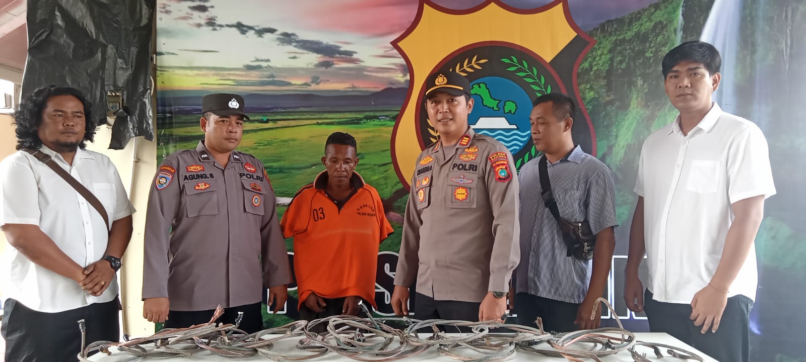 Dari hasil penangkapan terhadap pelaku unit Reskrim Polsek Belinyu mengamankan Barang bukti berupa 23 kabel tembaga diameter 50 mm.