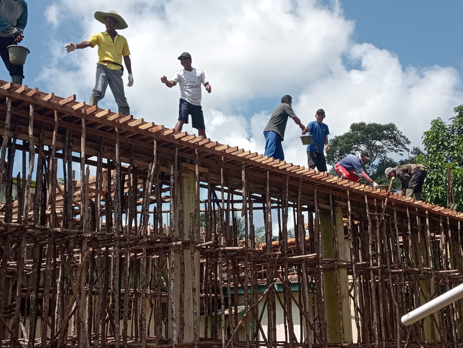 Rencananya Gotong-royong ini dilakukan sejak (19/6/2023) kemarin tapi diundur karena alat mesin mobil molennya rusak dan jadi hari ini kembali kita lakukan gotong pengecorannya” kata masyarakat Airbelo.