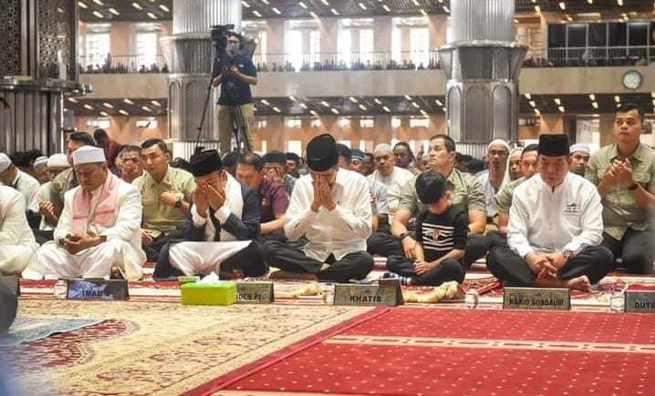 Jakarta| Jejakkriminal.com- Presiden Joko Widodo bersama cucu pertamanya, Jan Ethes Srinarendra, melakukan salat Jumat berjemaah di Masjid Istiqlal, Jakarta, pada Jumat, 23 Juni 2023. Dengan mengenakan kemeja putih lengan panjang, celana hitam, dan peci hitam, Presiden Jokowi dan cucunya tiba di tempat ibadah sekitar pukul 11.55 WIB.