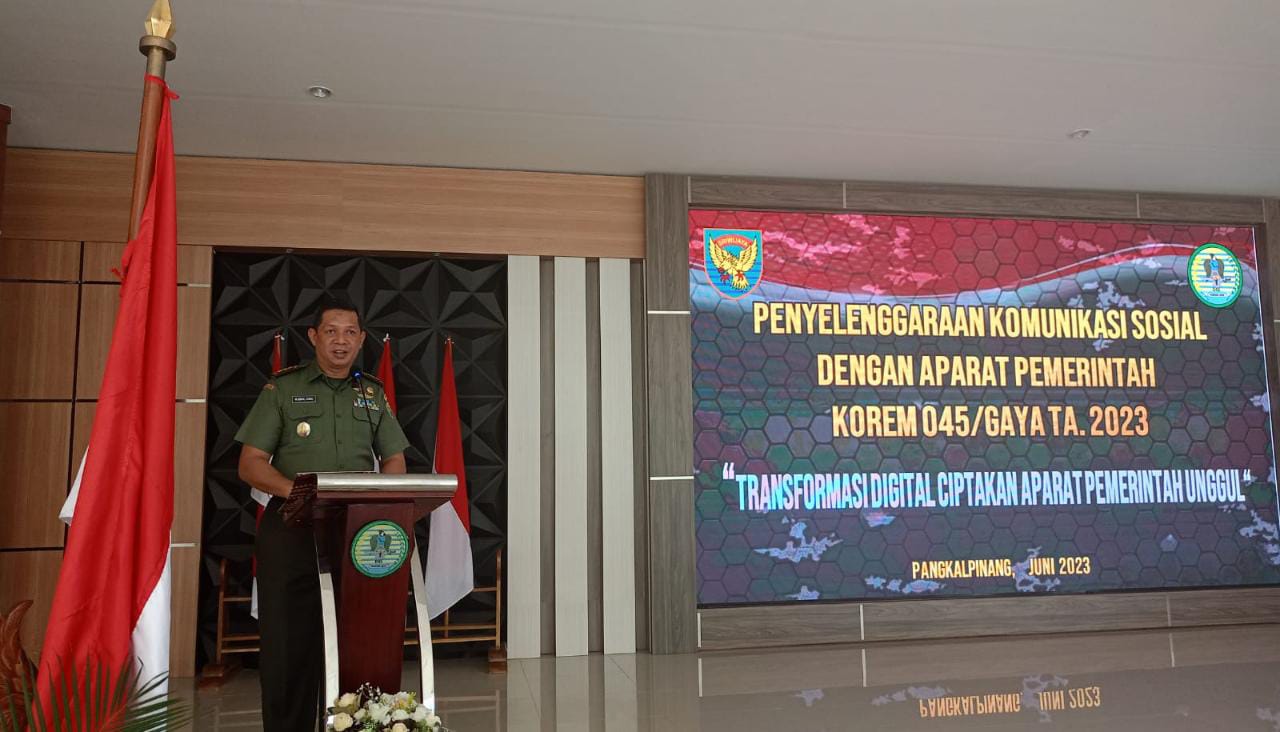 Pangkalpinang| Jejakkriminal.com-  Korem 045/Garuda Jaya menyelenggaran Komunikasi Sosial (Komsos) dengan Aparat Pemerintah Provinsi Kepulauan Bangka Belitung Senin 26/06/2023 di Aula Makorem.