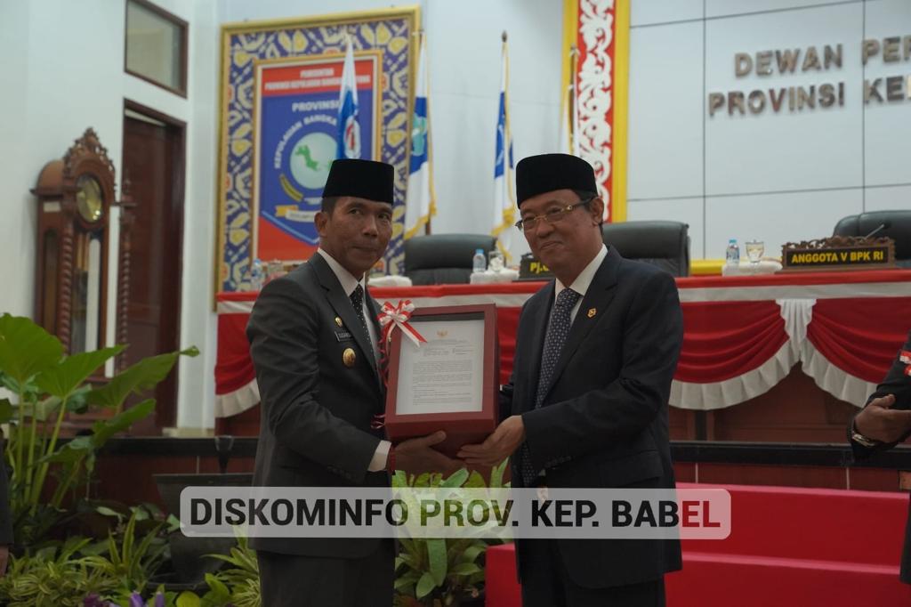 Perolehan WTP dari Badan Pemeriksa Keuangan (BPK) Republik Indonesia (RI) atas laporan keuangan anggaran tahun 2022 ini disampaikannya dalam rapat paripurna DPRD Babel dengan agenda laporan keuangan pemerintah daerah (LKPD) Pemprov. Kep. Babel, di Ruang Rapat DPRD Babel, Selasa (11/7/2023).