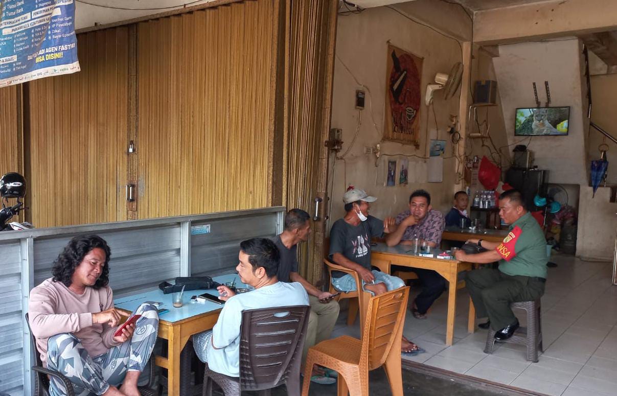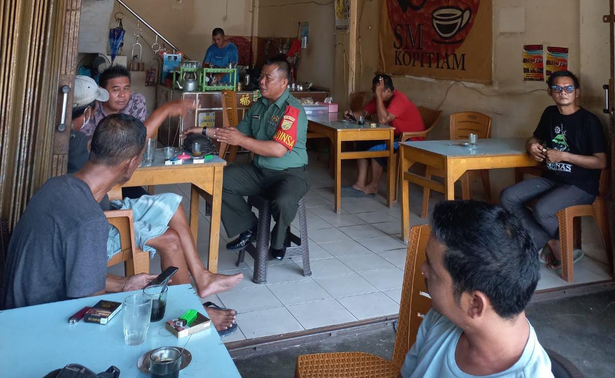 Dalam kegiatan ini Babinsa bersama warga melaksanakan ngobrol santai seputar wilayah binaan di warung kopi Sudi Mampir jl Kapten P tendean Kelurahan Kutopanji.