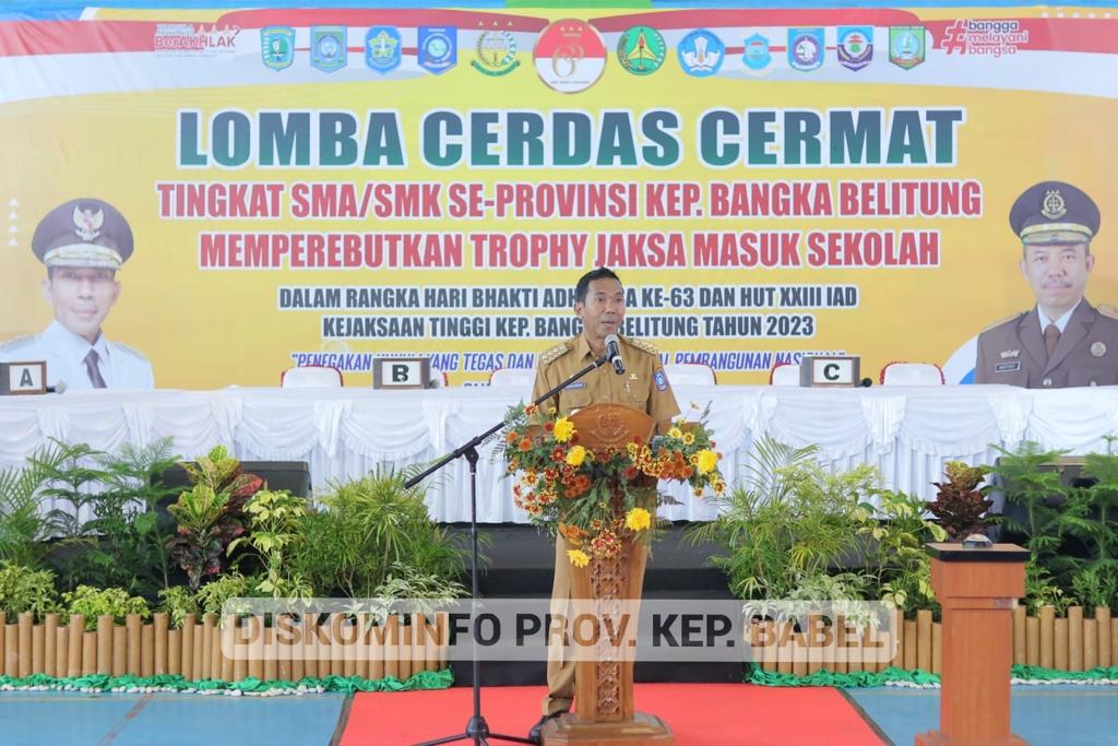 Hal itu disampaikan oleh Pj Gubernur Babel, Suganda dalam arahannya saat membuka kegiatan Lomba Cerdas Cermat yang diselengarakan oleh Kejati Babel, yang berlangsung di GOR Sahabuddin, Provinsi Kepulauan Bangka Belitung, Selasa ( 18/07/23 ).