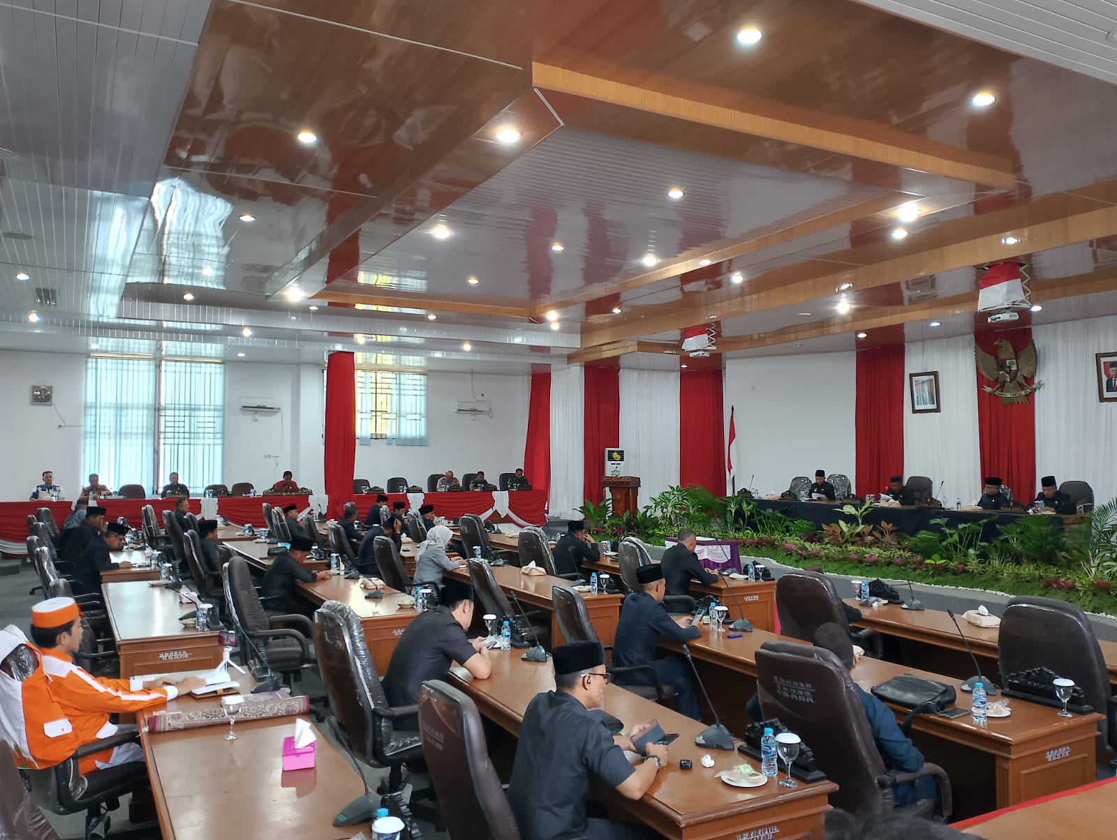 Sungailiat|jejakkriminal.com -DPRD Kabupaten Bangka Jum’at (18/08/2023), menggelar Rapat Paripurna Penyampaian Rancangan Perubahan KUA dan Rancangan Perubahan PPAS APBD TA.2023, Rapat Penyampaian Rancangan KUA dan Rancangan PPAS APBD TA.2024, Rapat Paripurna Penyampaian Hasil Reses, Rapat Paripurna Pengumuman Berakhirnya masa jabatan Bupati dan Wakil Bupati Bangka. Rapat dipimpin langsung oleh ketua DPRD ISKANDAR,S.IP dan dihadiri oleh Bupati Bangka MULKAN,SH MH,Wakil Ketua I M.Taufik Koriyanto,SH,MH, Wakil Ketua II Rendra Basri,B.Sc FORKOPIMDA ,Kepala Dinas,kantor, Camat, Lurah, Darma Wanita dan Insan Pers.