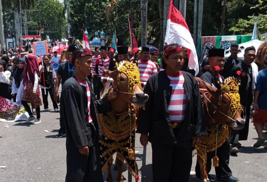 Selain pawai di Alun-alun Warga Paguyuban Suku Madura pun meneruskan berjalan dengan menggiring dua sapi yang di hiasi oleh seragam serta bendera merah putih yang menandakan bahwa Indonesia akan lebih maju ke depan nya serta menandakan ciri khas kesenian Suku Madura.