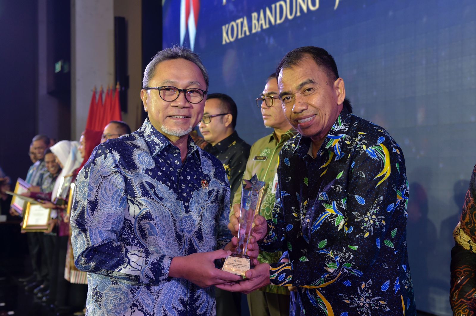 Mewakili Penjabat Gubernur Kep. Babel, Asisten III Setda Pemprov Kep. Babel Yunan Helmi menerima penyerahan penghargaan yang dilaksanakan di Pullman Bandung Grand Central tersebut, yang diserahkan langsung oleh Menteri Perdagangan (Mendag), Zulkifli Hasan, Jumat (10/11/2023)