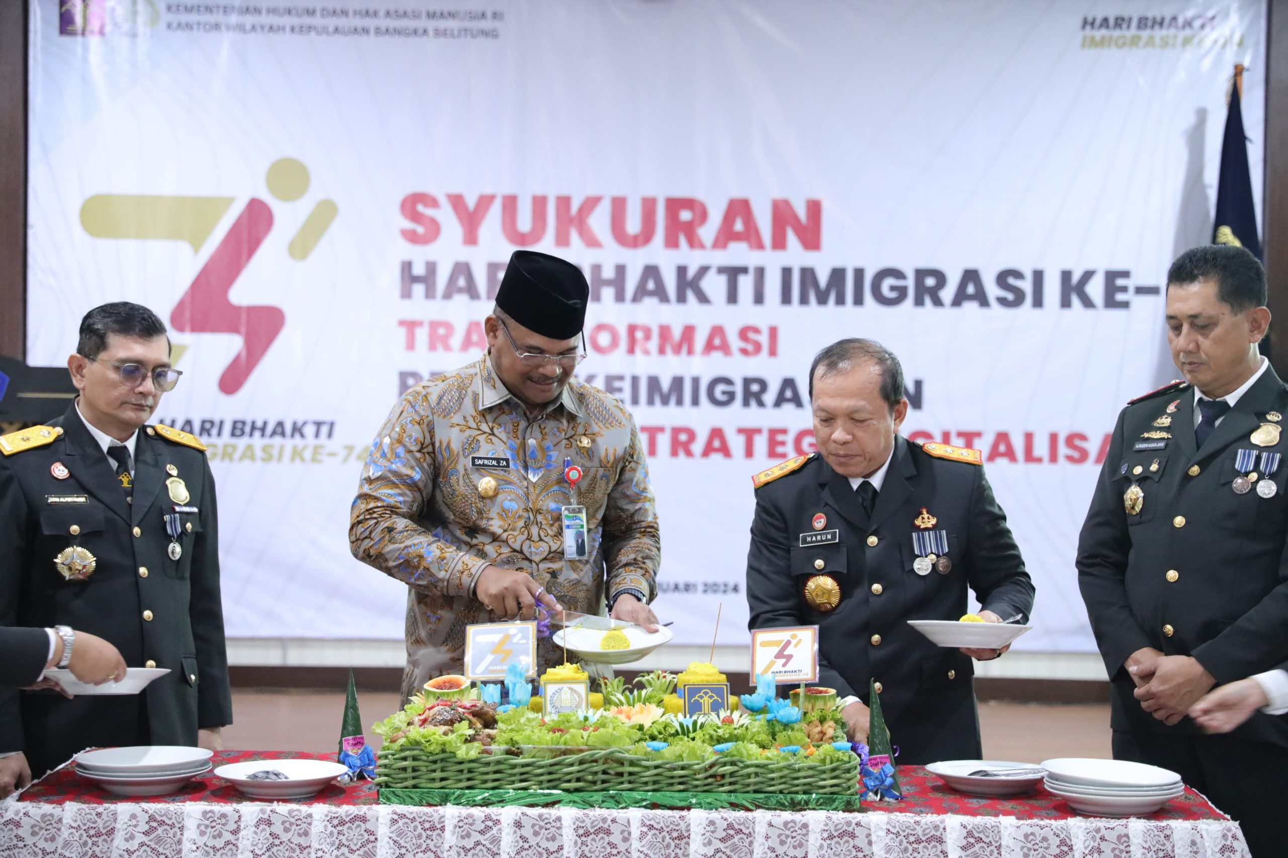 “Misalnya paspor, saat ini masyarakat tak perlu menunggu berhari-hari dalam proses pembuatan paspor, namun kini proses pembuatan paspor bisa selesai hanya dalam satu hari,” ujar Pj Gubernur Safrizal saat memberikan sambutan pada acara Syukuran Hari Bhakti Imigrasi ke-74 di di Kantor Wilayah Kemenkumham Provinsi Kepulauan Babel, Jumat (26/1).