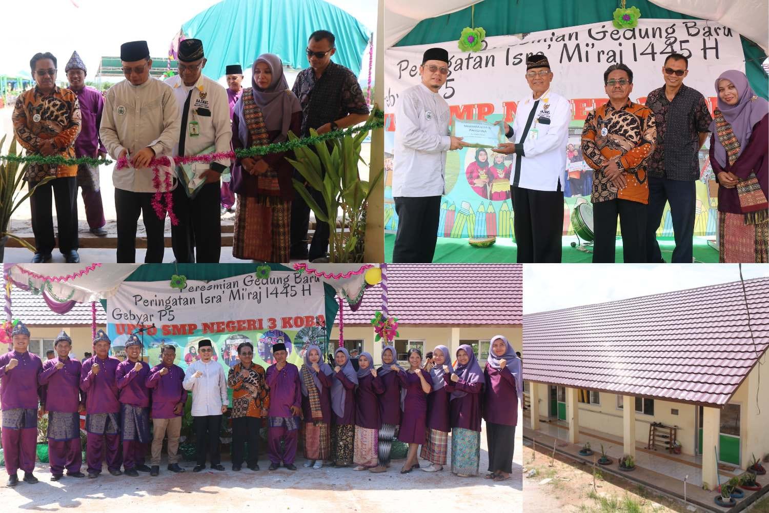 Peresmian gedung bangunan baru di SMPN 3 Koba ini ditandai dengan pengguntingan pita yang dilakukan oleh Algafry Rahman.