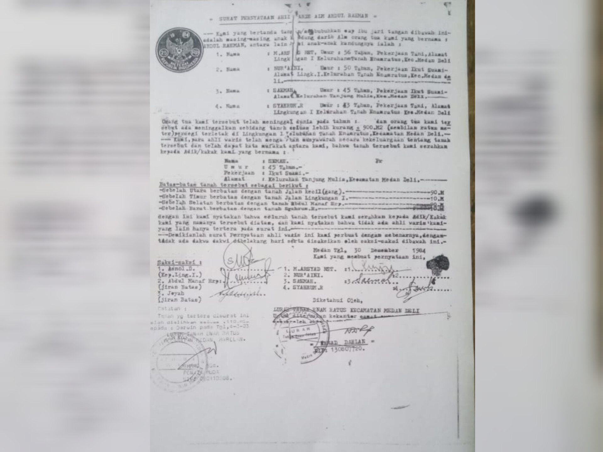 “Sudah saya cari kemana-mana tapi belum ketemu-ketemu” kata pemilik ahli waris tanah anak dari almarhum semah ,dan anak Ibu semah bernama 1,Lismawati 2.Linawati 3.Junaid 3.Darwin 4.hayati 5.nurainun 6.M.yusuf dan Nurmala sari. (Irham)