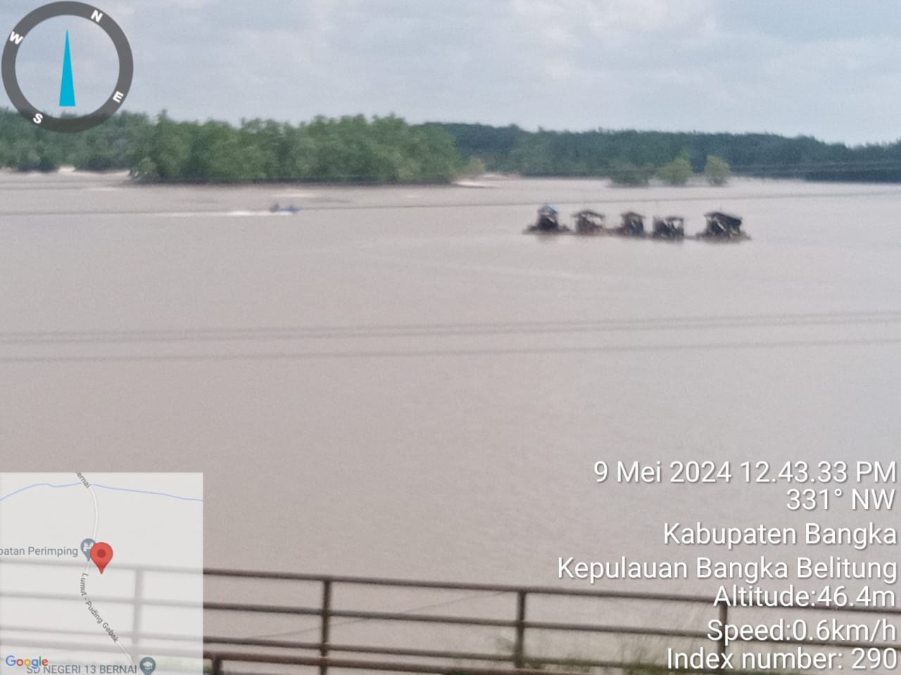 Dari pantauan Awak media kamis (09/05/2024) pukul 12 41 Wib terlihat puluhan Ti Apung beroperasi di kiri dan kanan Das jembatan perimping. Dan juga terlihat Air sudah berubah warna menjadi coklat dikarenakan tercemar aktivitas tambang tersebut.