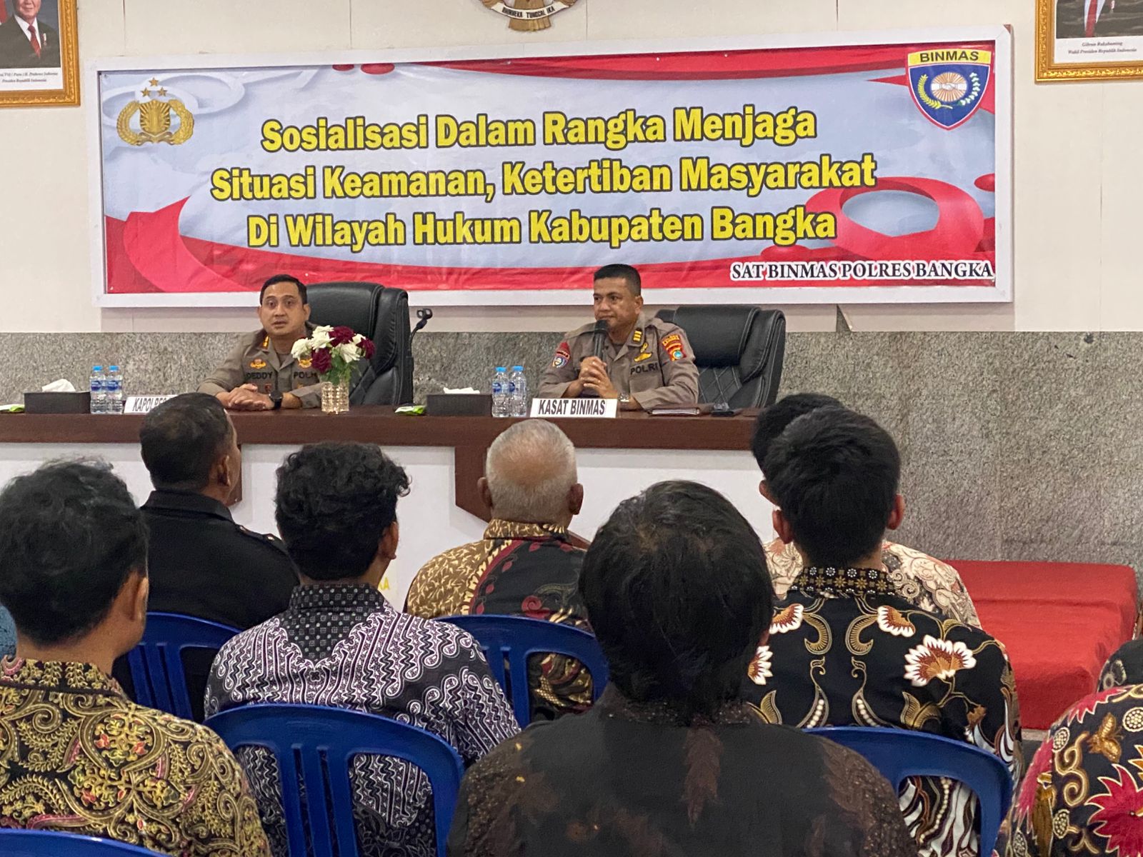 Bangka| Jejakkriminal.com – Polres Bangka melalui Satuan Binmas menggelar sosialisasi keamanan dan ketertiban masyarakat (Kamtibmas) menjelang Pilkada ulang tahun 2025.