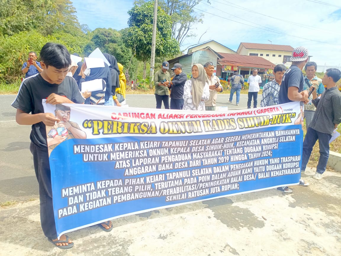 Aksi unjuk rasa tersebut menyoroti dugaan penyalahgunaan wewenang dan praktik korupsi, kolusi, dan nepotisme (KKN) terkait pengelolaan Dana Desa Tahun 2019 hingga 2024 di Desa Sihuik-huik, Kecamatan Angkola Selatan.
