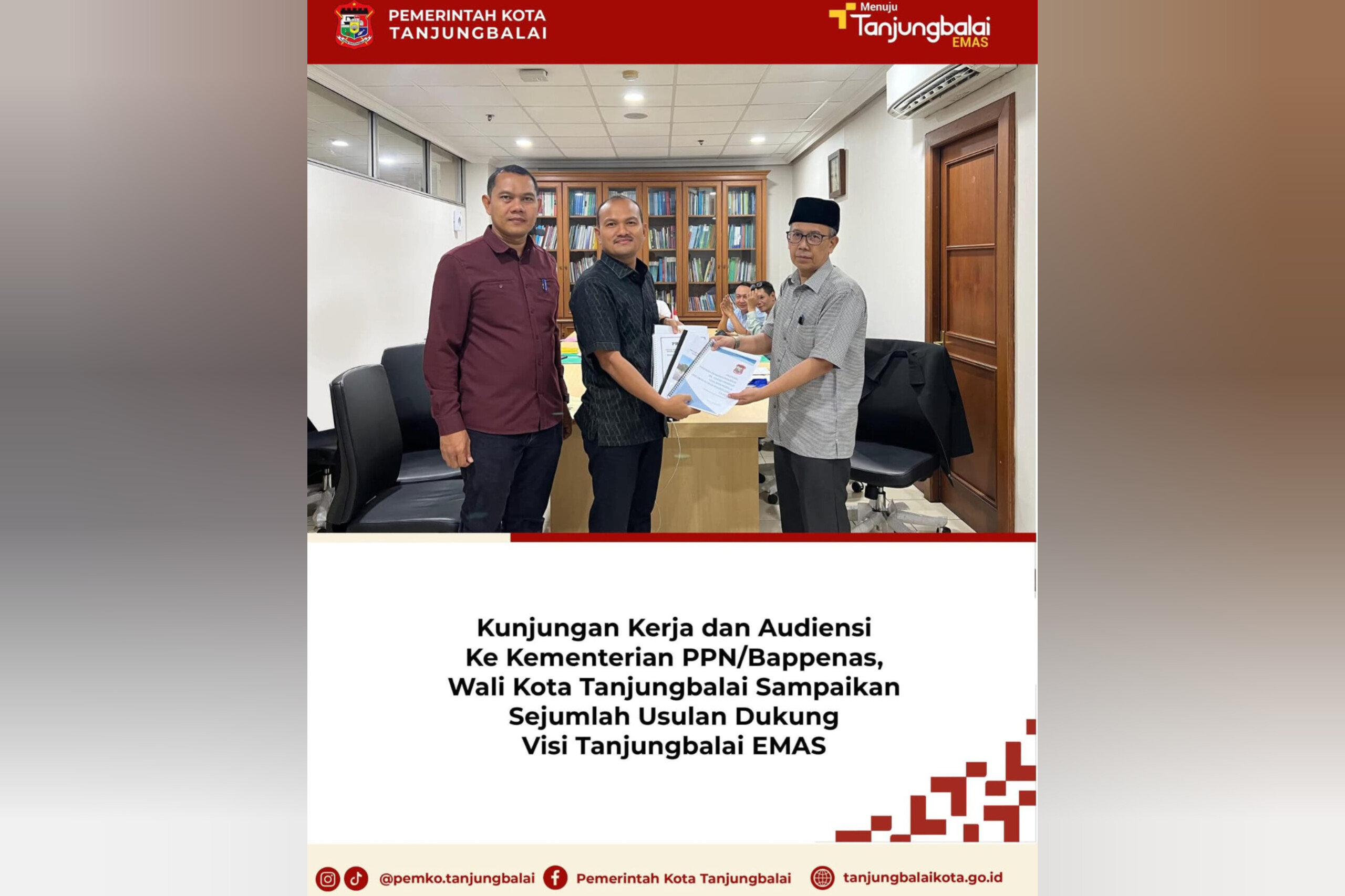 Jakarta| JejakKriminal.com – Wali Kota Tanjungbalai, Mahyaruddin Salim didampingi Plt Kadis Kominfo Heri Antoni melakukan kunjungan kerja sekaligus audiensi ke Kementerian Perencanaan Pembangunan Nasional (PPN)/Badan Perencanaan Pembangunan Nasional (Bappenas) di Kantor Bappenas, Menteng, Jakarta Pusat, Kamis (10/7/2025)