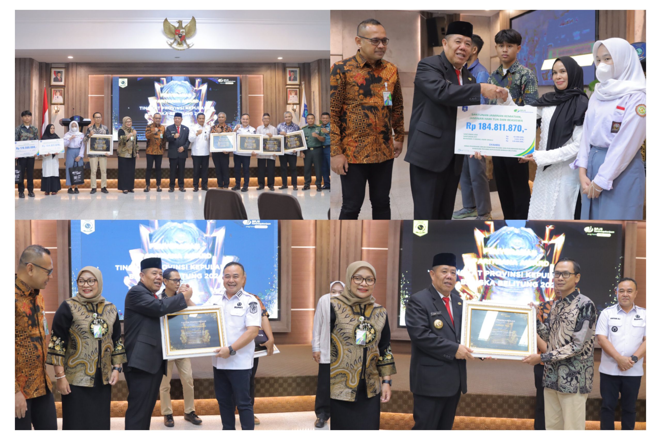 “Kami dari Pemerintah Provinsi Kepulauan Babel selalu siaga dengan BPJS Ketenagakerjaan maupun BPJS Kesehatan, di mana kami sudah menerima laporan bahwa ada 3 kabupaten penerima penghargaan yaitu Kabupaten Bangka, Bangka Barat dan Belitung Timur, ada lagi siswa-siswa yang diberi BPJS,” jelasnya.