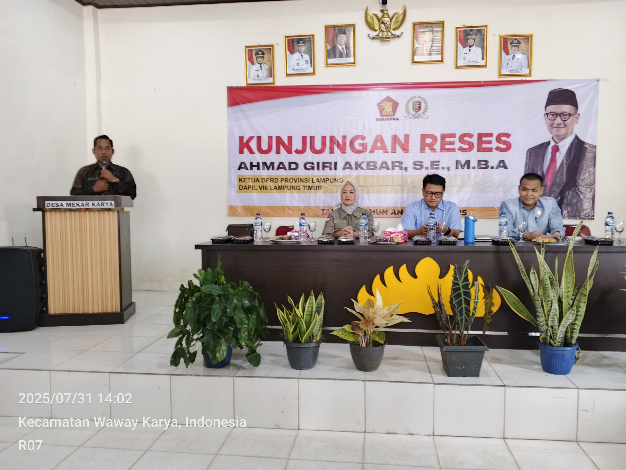 Hal senada diungkapkan oleh Ahmad Giri Akbar Pimpinan DPRD Provinsi Lampung, bentuk pengabdian kepada masyarakat sesuai arahan Presiden RI Prabowo Subianto untuk terus meningkatkan kualitas serta mengurai persoalan krusial yang berkaitan dengan pembangunan serta bantuan agar tepat guna. ” Saya berharap kita bisa sama-sama menerapkan sikap Prosperity dan Scurity menjadi landasan utama guna menjaga kemakmuran serta ketertiban, keamanan, guna mengawal segala bentuk pembangunan Infrastruktur diwilayah Waway Karya Kabupaten Lampung Timur ini, karna akan banyak pembangunan yang dilaksanakan di wilayah ini, mulai dari jembatan, jalan hingga sumur bor, jadi kita sama-sama mengamankan ketika program itu mulai terlaksana,” tuturnya.