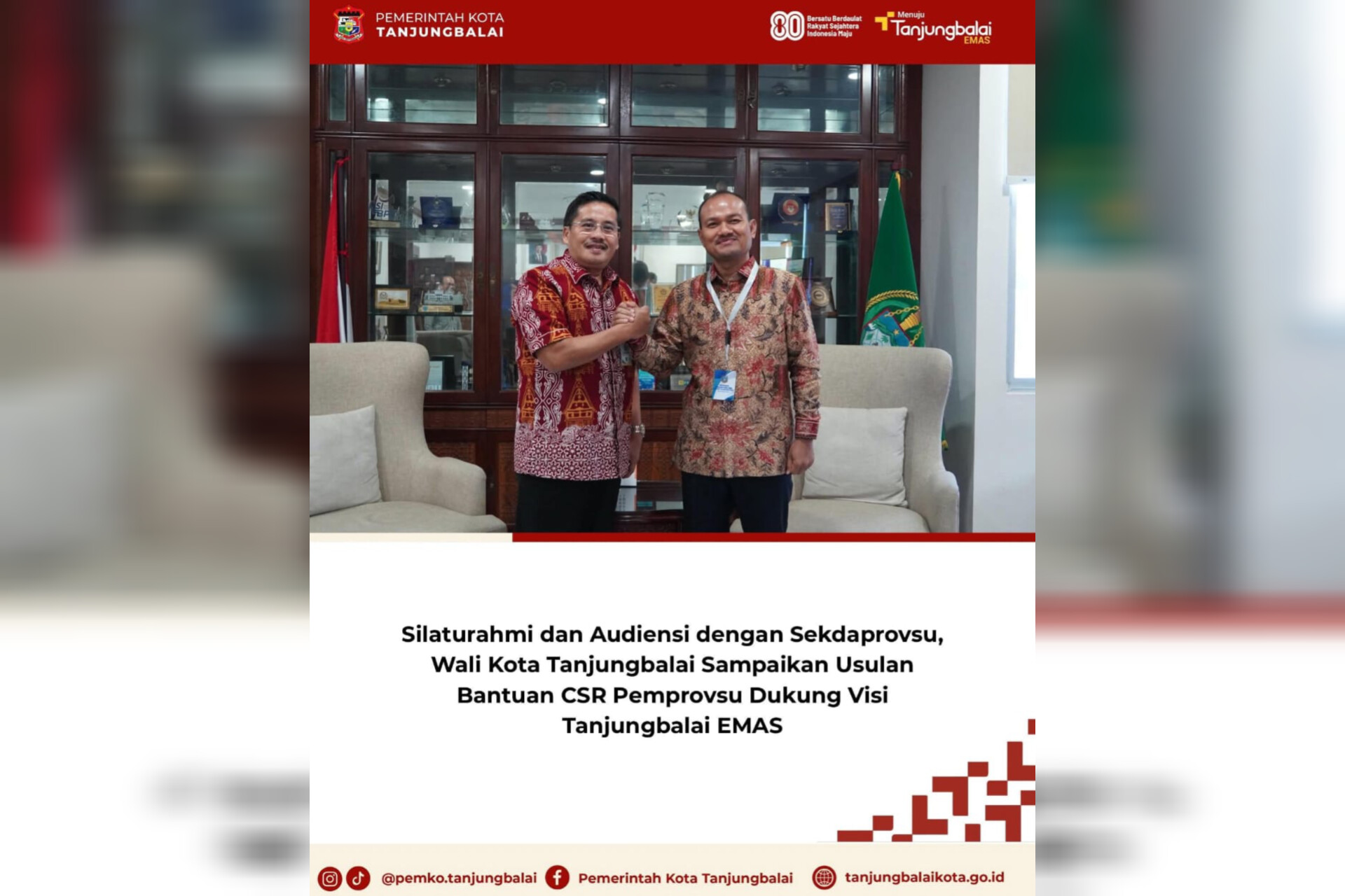 Tanjungbalai,Sumut|JejakKriminal.com- – Wali Kota Tanjungbalai, Mahyaruddin Salim didampingi Kepala Baperida Zul Abdiman dan Plt Kadis Kominfo Heri Antoni melakukan silaturahmi sekaligus audiensi dengan Sekretaris Daerah Propinsi Sumatera Utara, Togap Simangunsong diruang kerjanya, Kantor Gubernur Sumatera Utara, Jumat (8/8/2025)