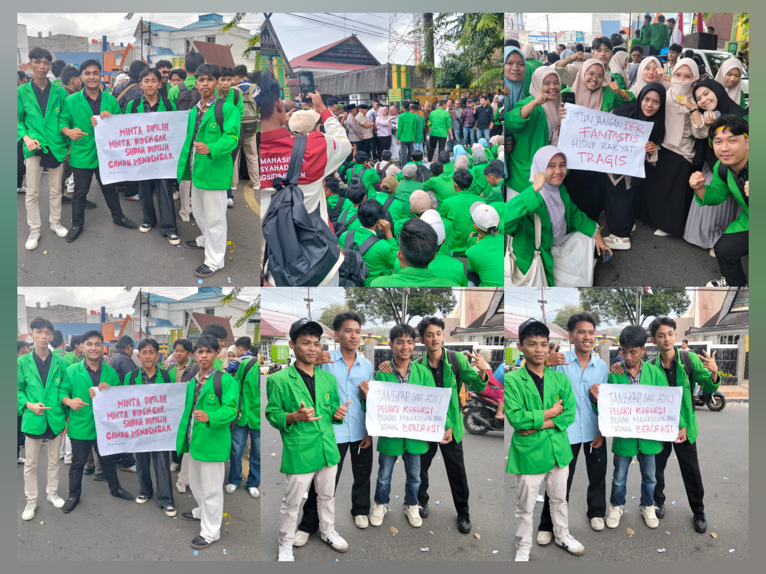 “Minta dipilih minta didengar, sudah dipilih gak mau mendengar,” tulisan dalam kertas manila yang dibentangkan mahasiswa.