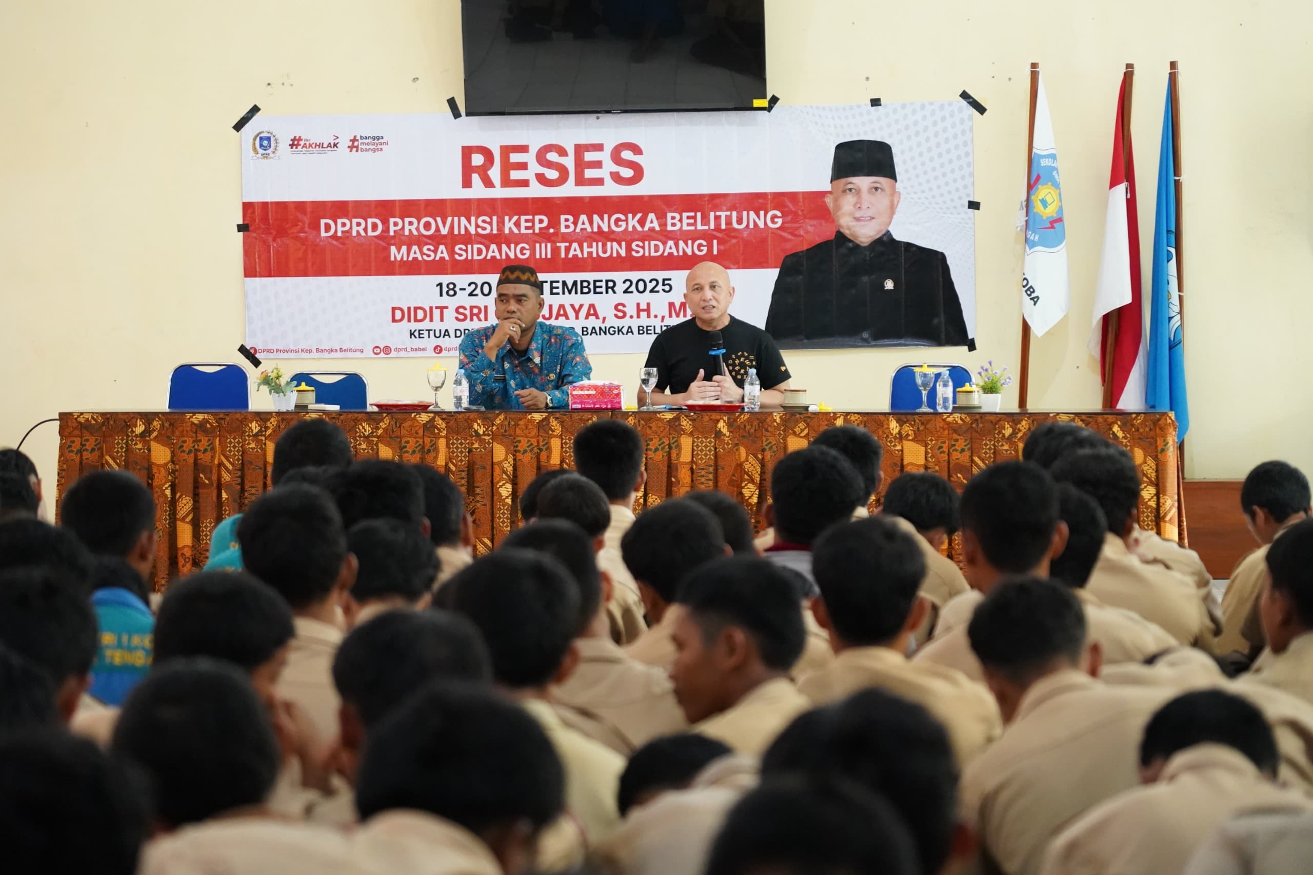 KOBA| Jejakkriminal.com – Ketua DPRD Provinsi Kepulauan Bangka Belitung (Babel), Didit Srigusjaya melaksanakan kegiatan Reses Masa Sidang III Tahun Sidang I di SMK Negeri 1 Koba, Kamis (18/9/2025). Dalam kunjungan tersebut, Didit menyerap aspirasi pihak sekolah terkait kebutuhan sarana dan prasarana, hingga pembiayaan penunjang pendidikan.
