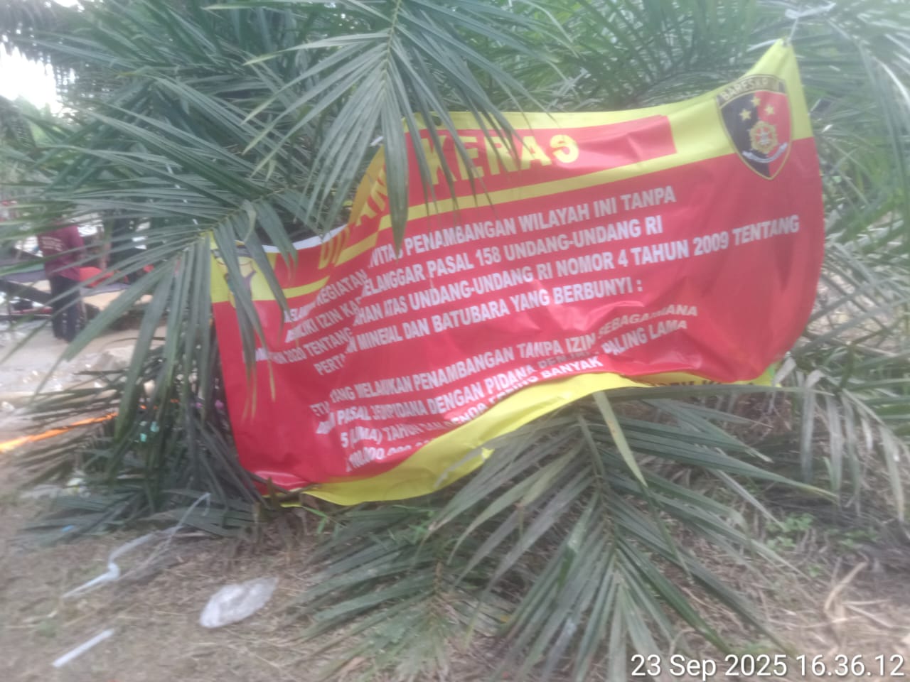 Dan dilokasi yang sama ditemukan spanduk larangan dari Polres Bangka Tengah. Tapi Spanduk larangan tidak membuat takut bagi para penambang masih bebas beraktivitas sampai saat ini.