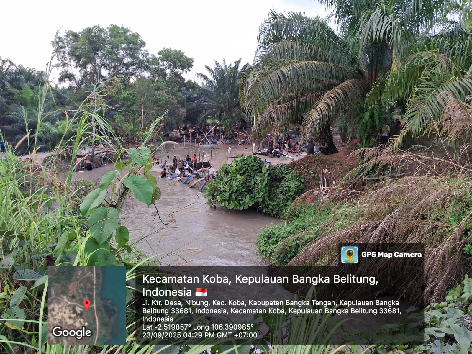 Bangka Tengah| JejakKriminal.com- Aktivitas tambang beroperasi di Daerah Aliran Sungai di Desa Nibung, Kecamatan Koba, kabupaten Bangka Tengah. Selasa (23/09/2025)