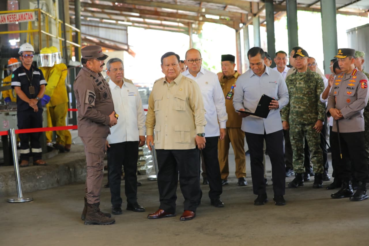 PANGKALPINANG| Jejakkriminal.com— Presiden Republik Indonesia, Prabowo Subianto, melakukan peninjauan barang rampasan negara di PT Tinindo Internusa, Kawasan Industri Ketapang, Pangkalpinang, Senin (6/10/2025).