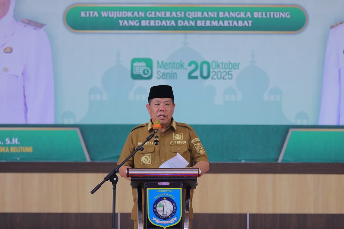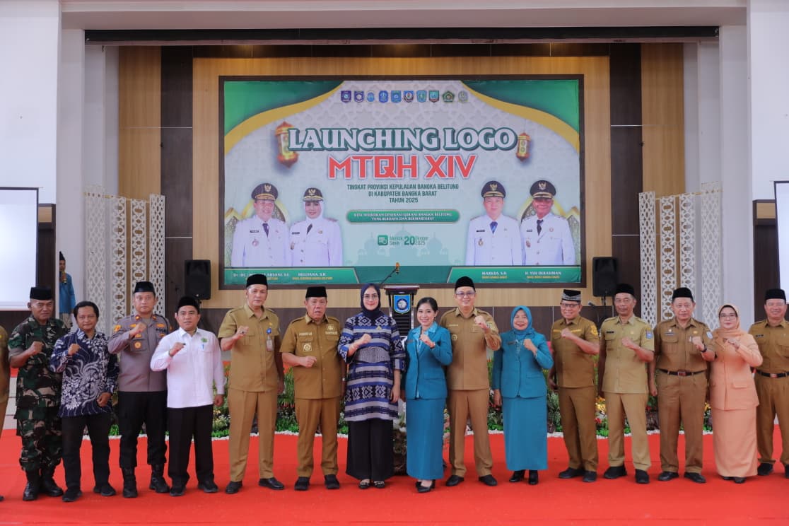 MENTOK | Jejakkriminal.com — Gubernur Kepulauan Bangka Belitung (Babel), Hidayat Arsani, meresmikan logo Musabaqah Tilawatil Quran dan Hadits (MTQH) ke-14 tingkat Provinsi Babel Tahun 2025, yang digelar di Gedung Majapahit, Komplek Unmet, Mentok, Kabupaten Bangka Barat, Senin (20/10/2025).