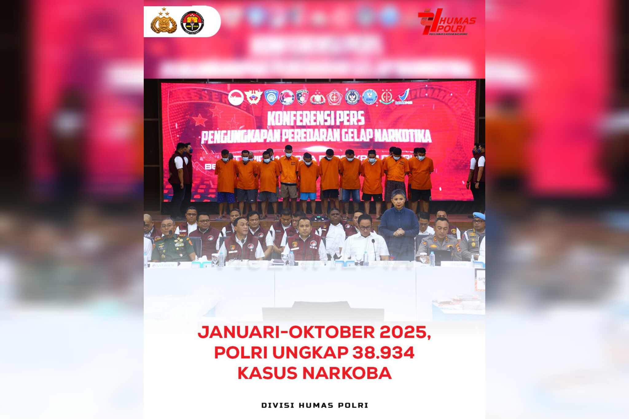 Jakarta | Jejakkriminal.com- Sepanjang Januari hingga Oktober 2025, Bareskrim Pori dan jajaran Polda berhasil mengungkap 38.934 kasus narkoba dengan total 51.763 tersangka, termasuk 157 warga negara asing dan 150 anak di bawah umur.