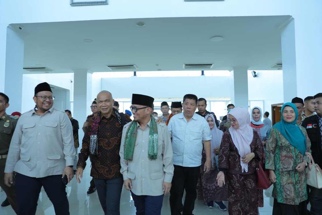 Pada kesempatan tersebut Gubernur Hidayat mengalungkan syal cual sebagai ucapan selamat datang di Negeri Serumpun Sebalai.