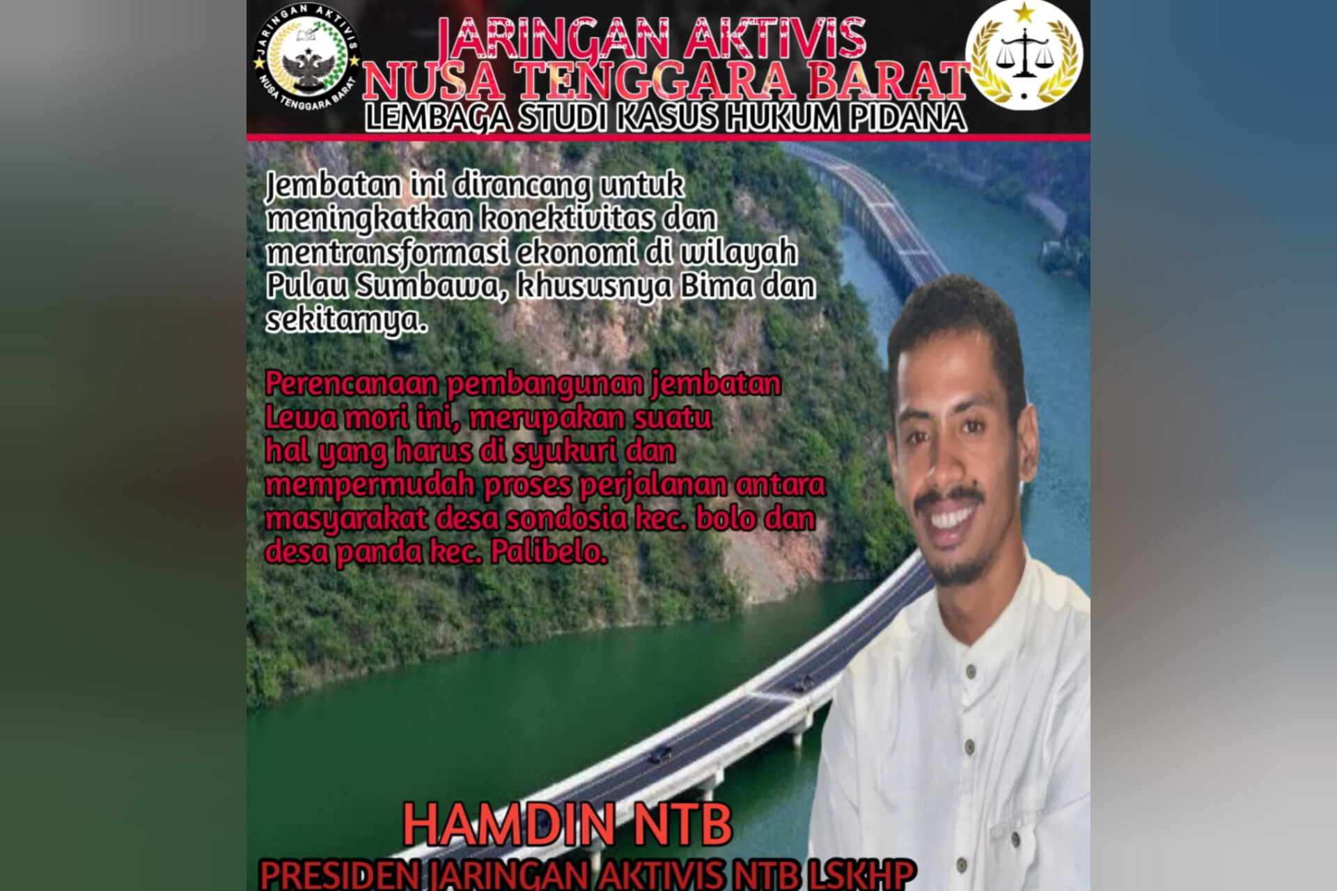 Mataram| Jejakkriminal.com –pada kesempatan yang mulia ini kami dari jaringan aktivis NTB “Lembaga studi kasus hukum pidana” (JA-NTB LSKHP). mendukung penuh dengan adanya perencanaan pembangunan jembatan Lewa mori di kabupaten Bima NTB, yang kemudian menghubungkan antara masyarakat kec. Bolo, Soromandi, sila dan masyarakat panda.