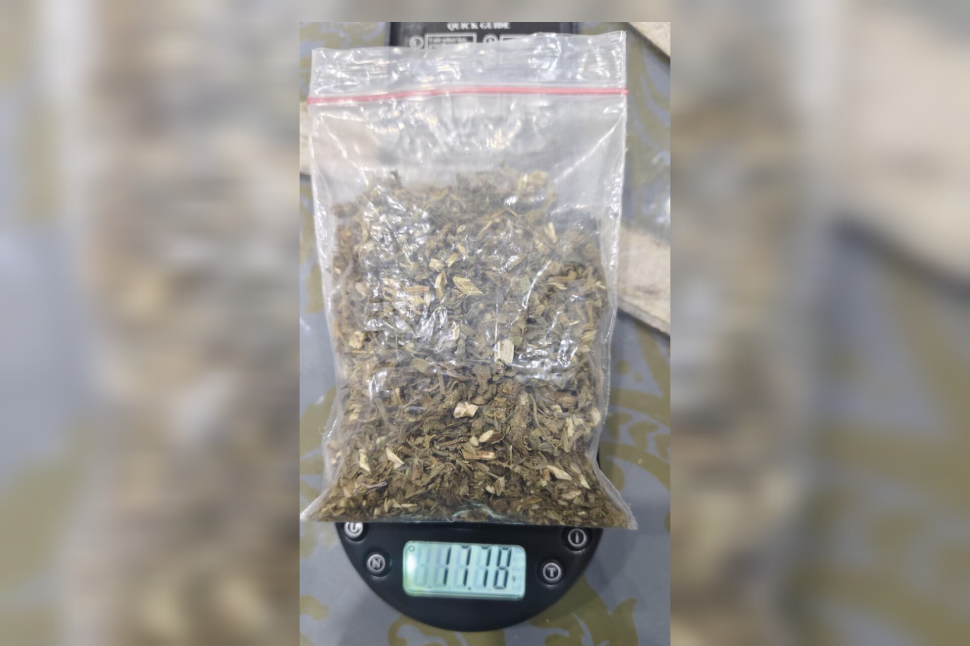 Dari penggeledahan, polisi menemukan 11 bungkus kertas buku berisi daun kering diduga ganja, satu unit handphone Oppo, dan satu plastik asoy hitam. Total berat barang bukti mencapai 17,78 gram.